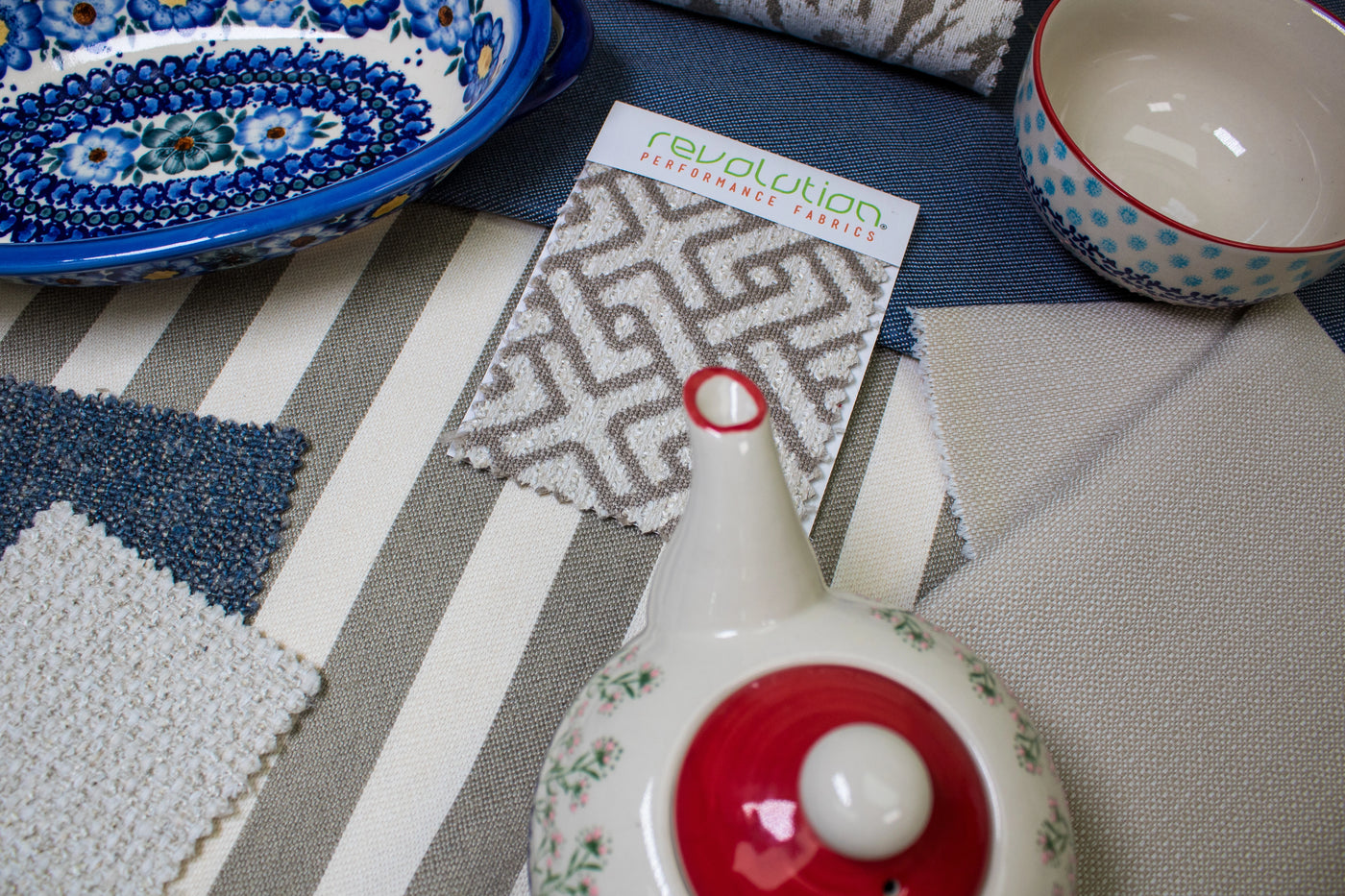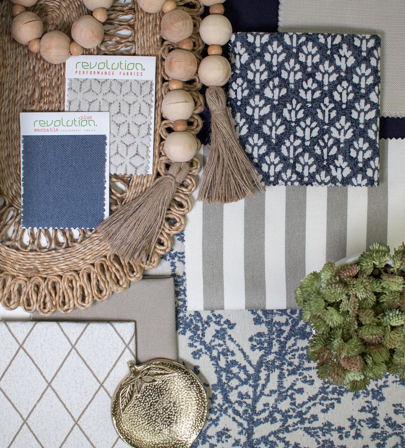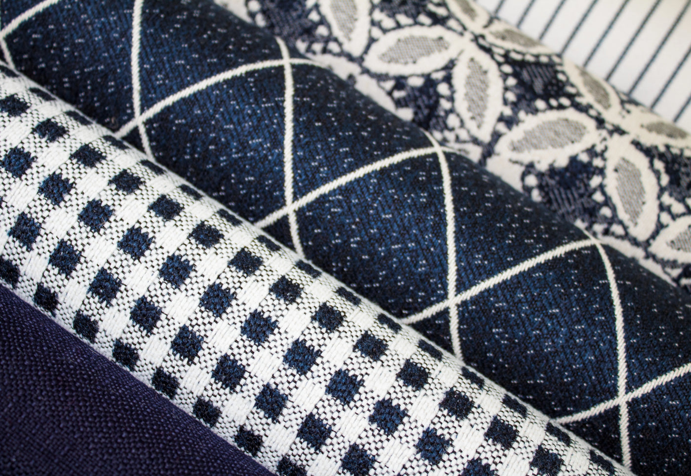 For lovers of jacquards, this story leans into the graphic side of cozy. Navy windowpanes, floral jacquards, and structured stripes create a collected, English-inspired feel that nods to The Holiday orThe Parent Trap. These fabrics are bold yet classic—perfect for accent chairs, layered pillows, or even dining room slipcovers. While deeply rooted in blue, this group easily pairs with the rest of the collection’s softer neutrals. And for maximum charm? Add a red gingham detail or lacquered vintage frame to drive home the "I-hired-a-designer-but-did-it-myself" aesthetic.